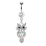Owl W/marquise Gems Belly Navel Ring Dangle Button Piercing Jewelry
